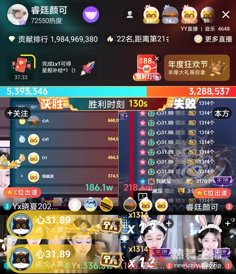 众所周知,现如今的YY直播是以颜艺类主播为主,女主播们的直播间一向是“盛产”神豪大哥,因此今年可谓是全线开启火拼模式。