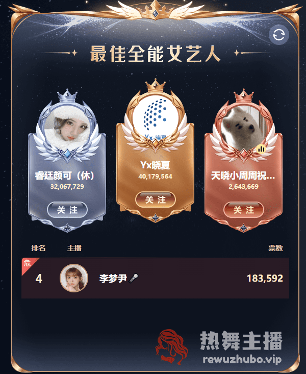 “晓夏”最终以4017万票夺冠“全能女艺人”冠军,可谓是吃得饱饱的,周榜更是达到了500多万。